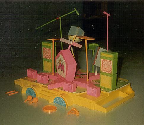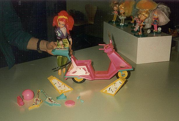 The FM Radio/Vanity maybe a Hollywood Jem playset, and a cheaper alternative to the Rockin’ Roadster/Glitter’n Gold Roadster. My Little Pony 1990 “Pony Bride” came with a wedding cake, the top of the cake seems to be a separate mold from the rest of the cake. My suspicion is it was intended for Wedding Kimber, but then altered for Pony Bride. It seems likely Hasbro would have released some type of Wedding Kimber playset, or even a wedding themed “Video Madness” to go with the Wedding Kimber theme. Astral’s dove might have been part of a wedding playset, because her accessory is the only known 1988 plastic accessory not to be a reused accessory, other than Riot’s guitar. The dove theme is heavy used in the Wedding Kimber videos, so that might be another indication the dove theme came from Hasbro. |